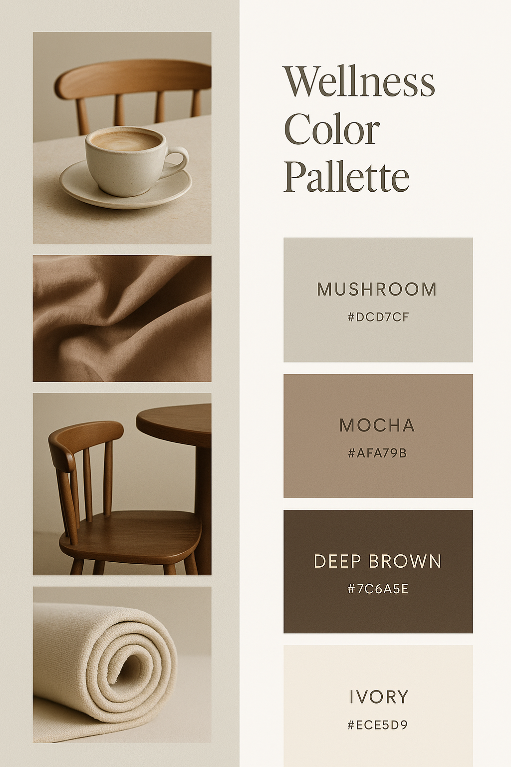 Mushroom #DCD7CF / Mocha #AFA79B / Deep Brown #7C6A5E / Ivory #ECE5D9