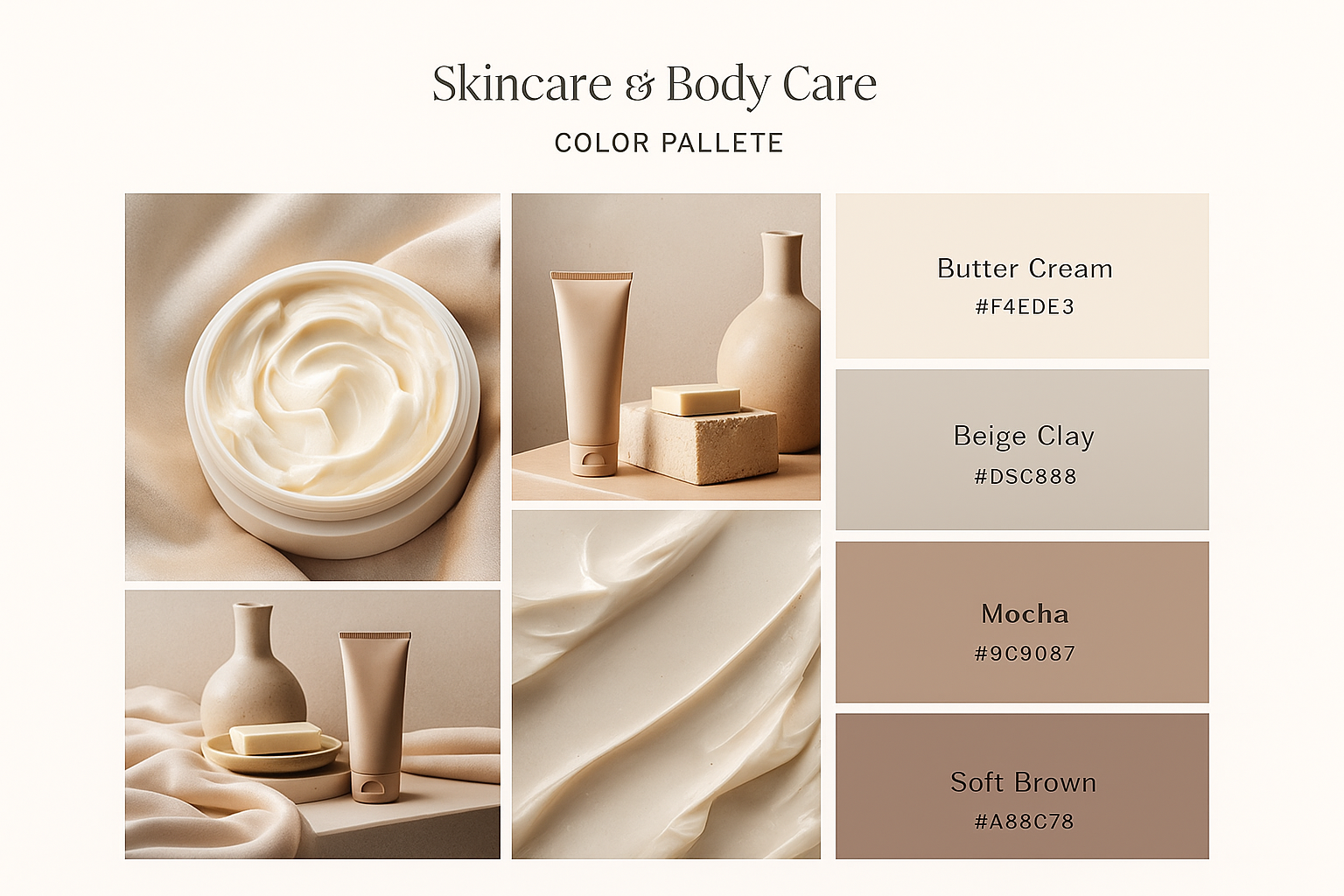 Butter Cream #F4EDE3 / Beige Clay #D5C8B8 / Mocha #9C9087 / Soft Brown #A88C78
