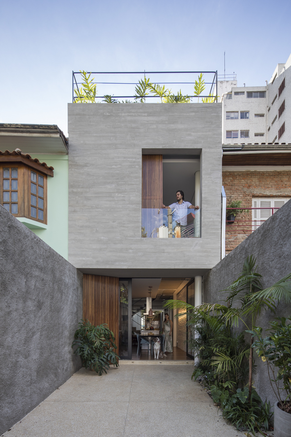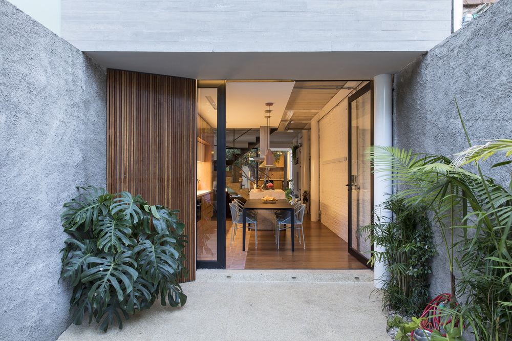 폭 4m 길이 24m의 세로로 길다란 직사각형 땅에 세롭게 세워진 집입니다.