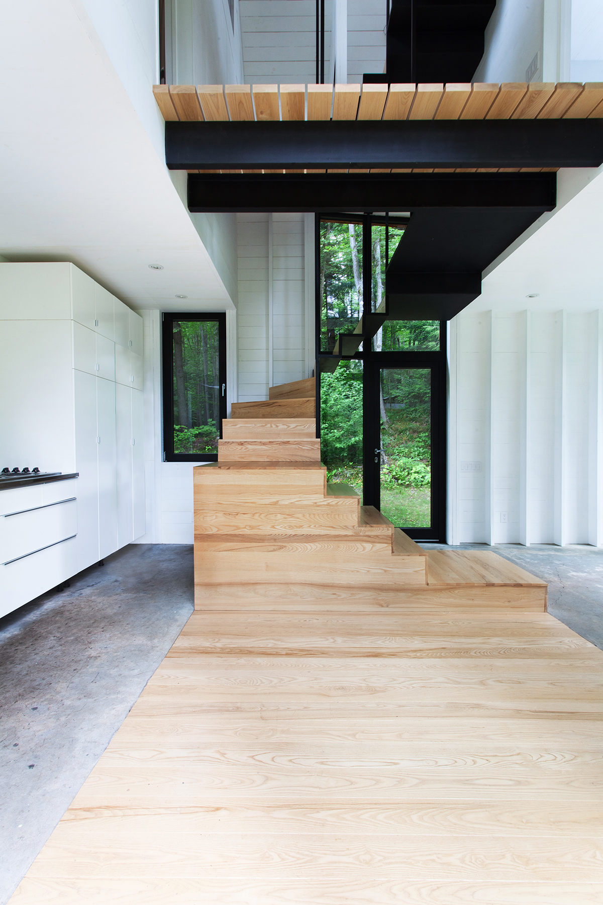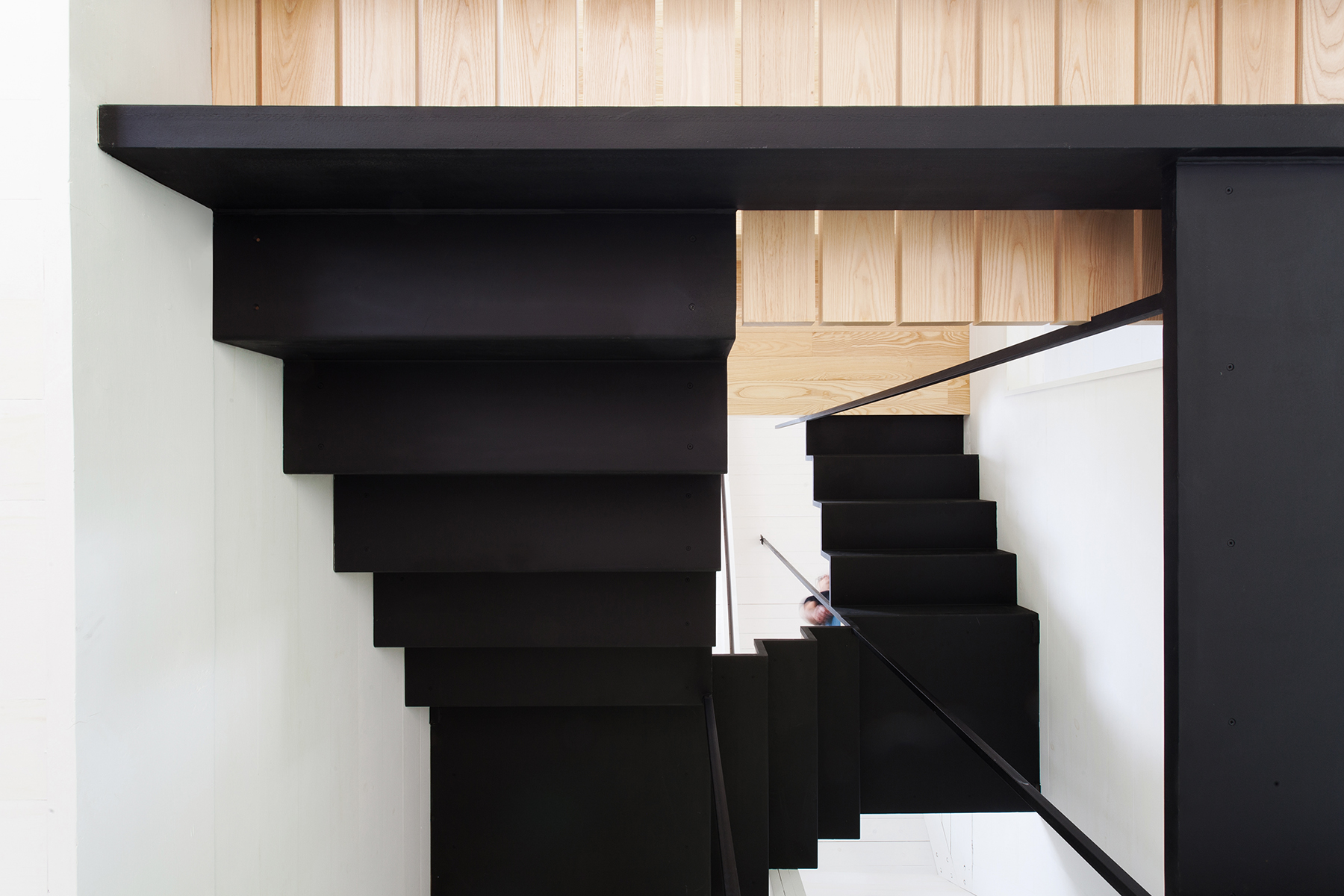 내부 인테리어는 흰색 벽면과 밝은 나무톤으로 외관과 대비시켜 주었으며