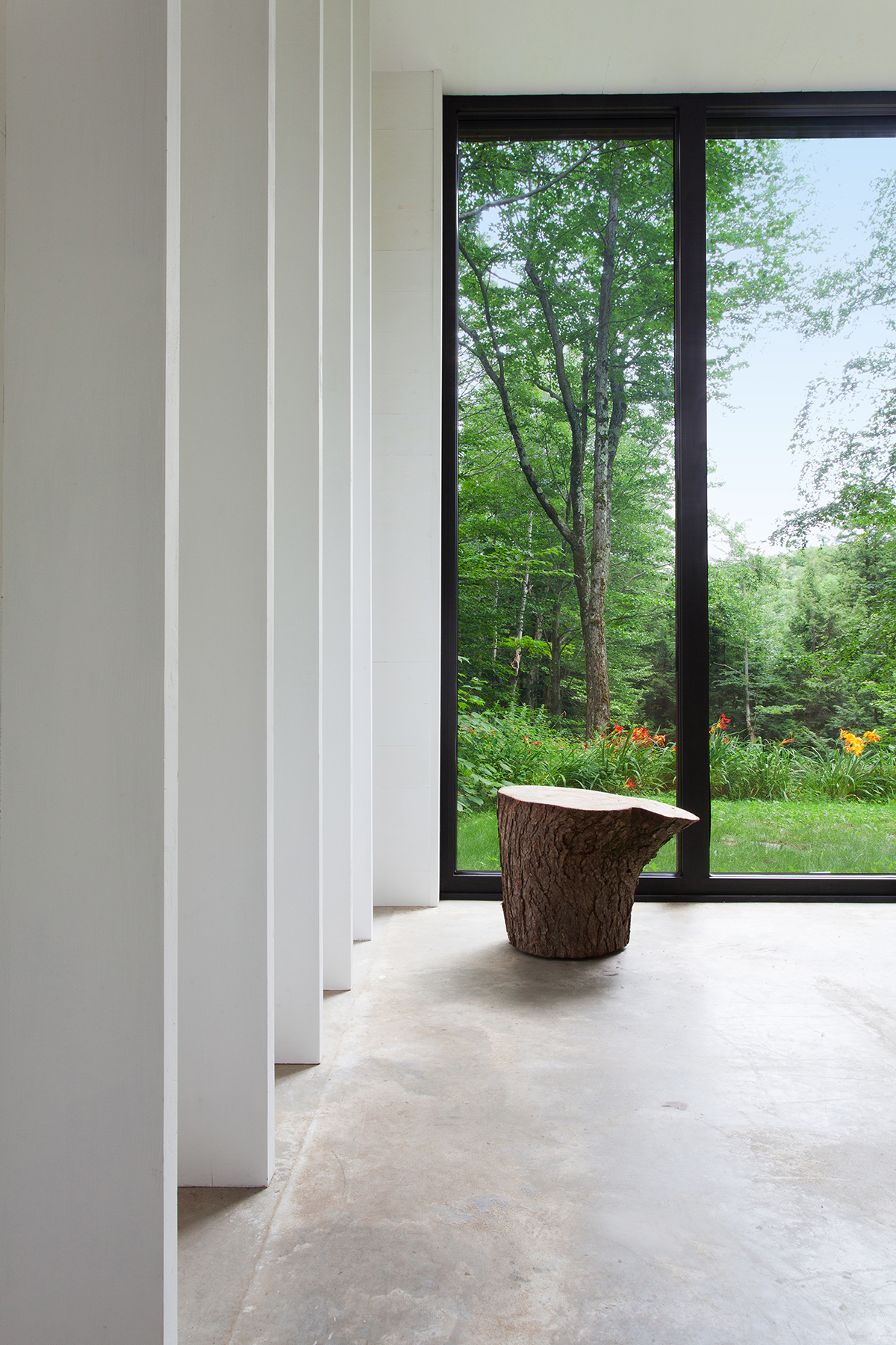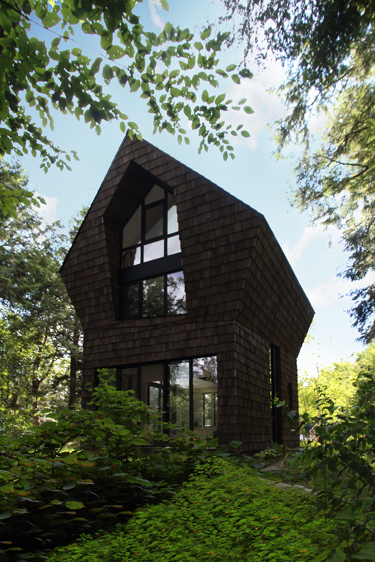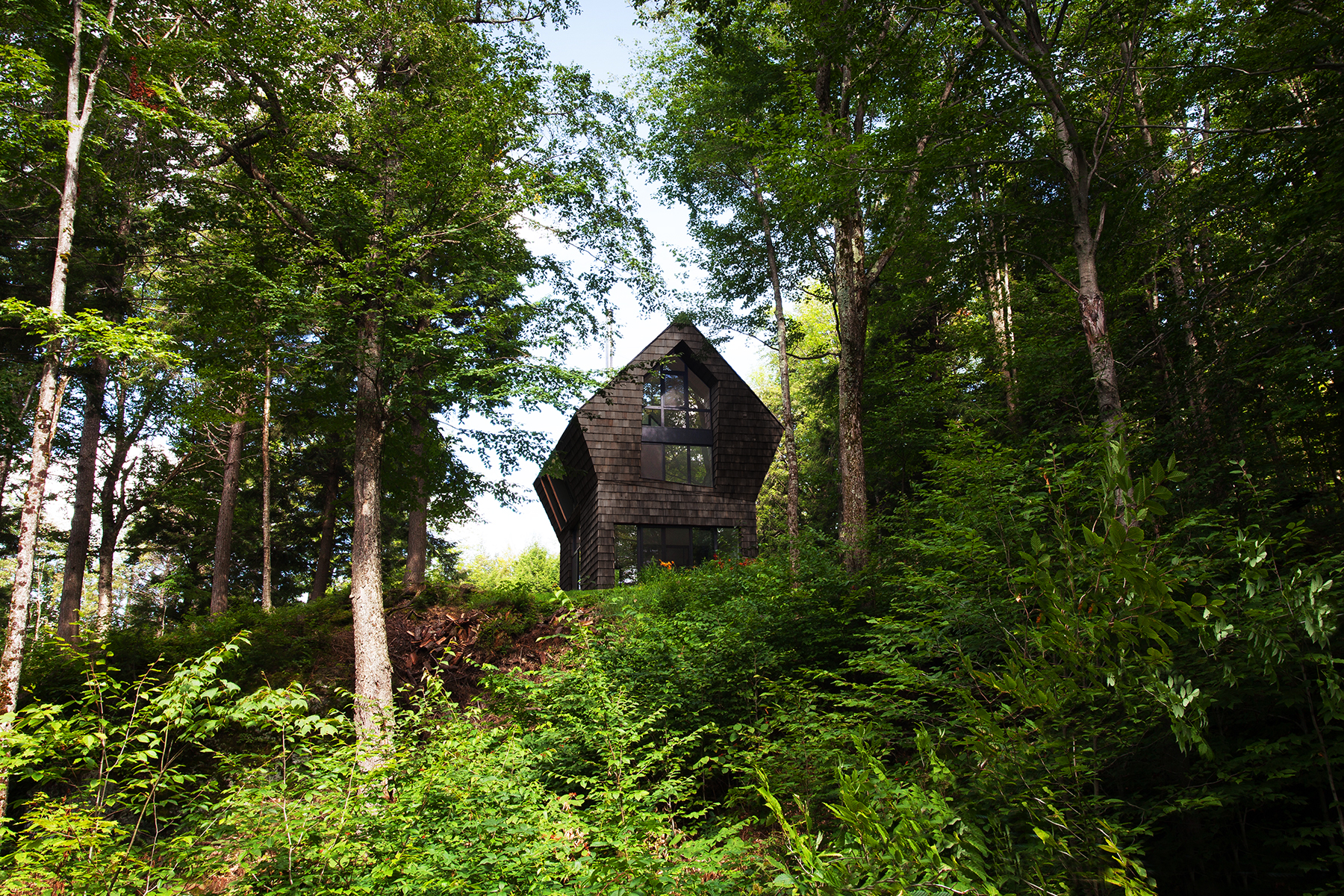 외부는 어두운 색감의 삼나무로 마감되어 숲에 자연스럽게 녹아들며