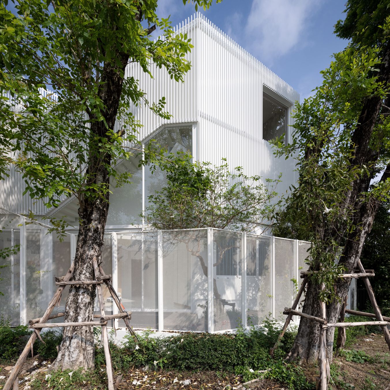 하나의 집으로 통일감을 주기위해 기존에 집에는 하얀 각재 파이프가 새롭게 입혀졌습니다.