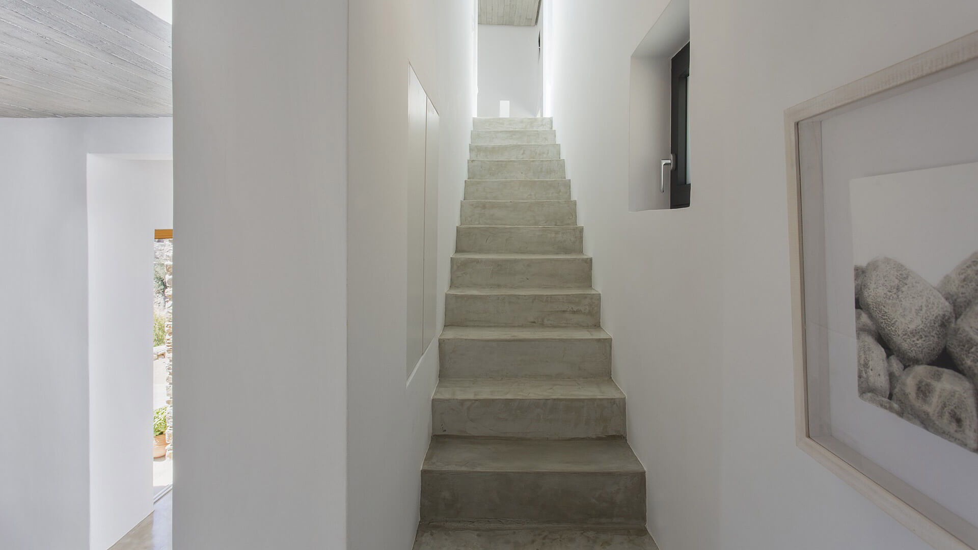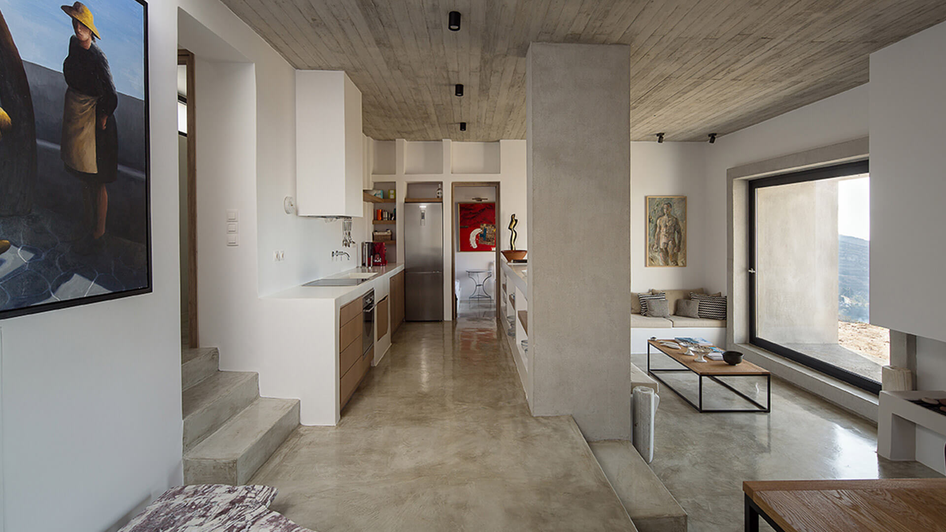 내부 인테리어는 화이트 톤의 벽에 노출콘크리트가 그대로 드러나있고 많은 예술 작품들로 미술관 같은 느낌입니다.