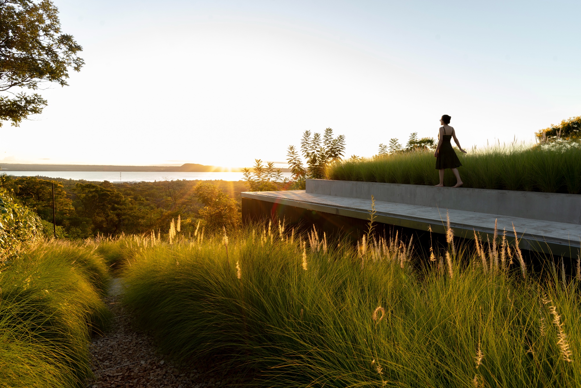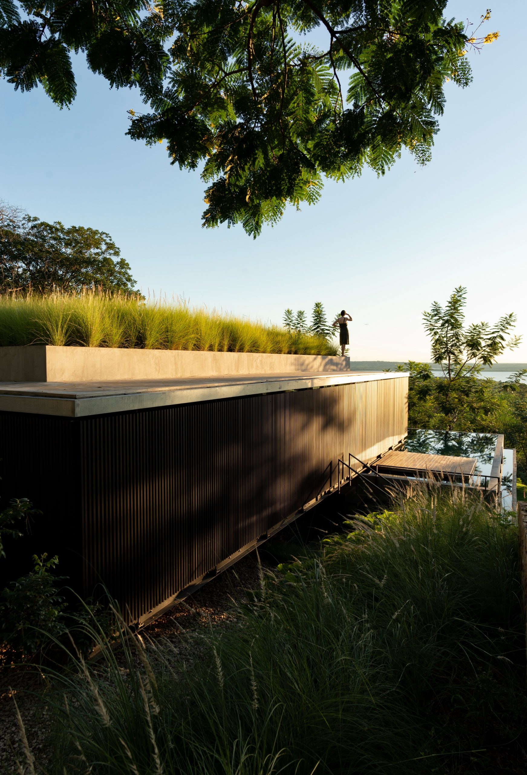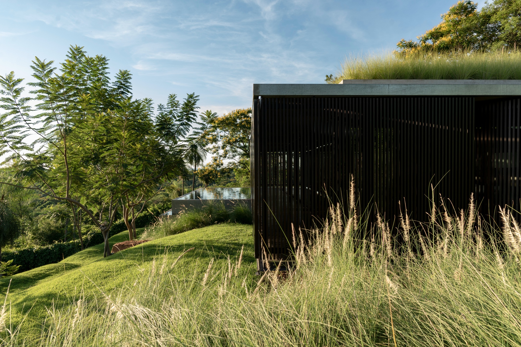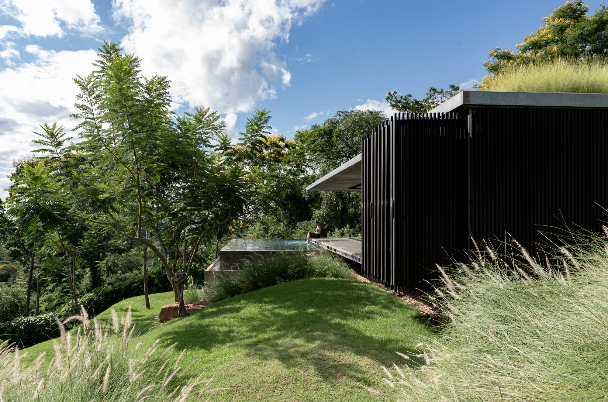 불규칙한 경사면에 자리한 정사각형 집입니다.