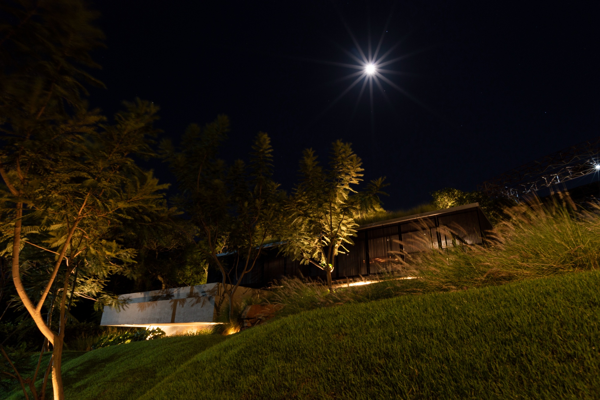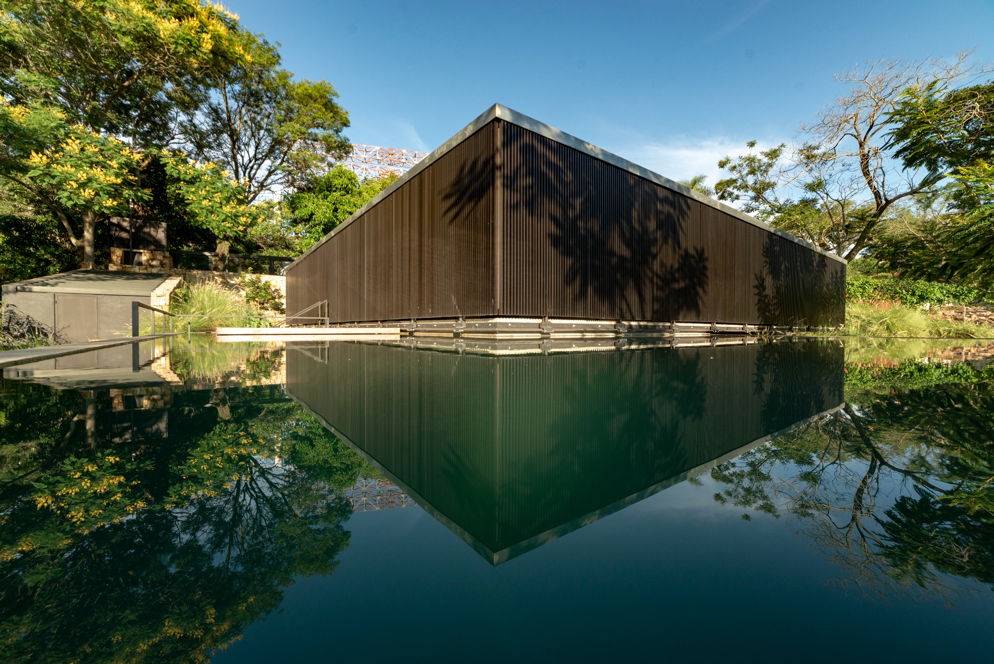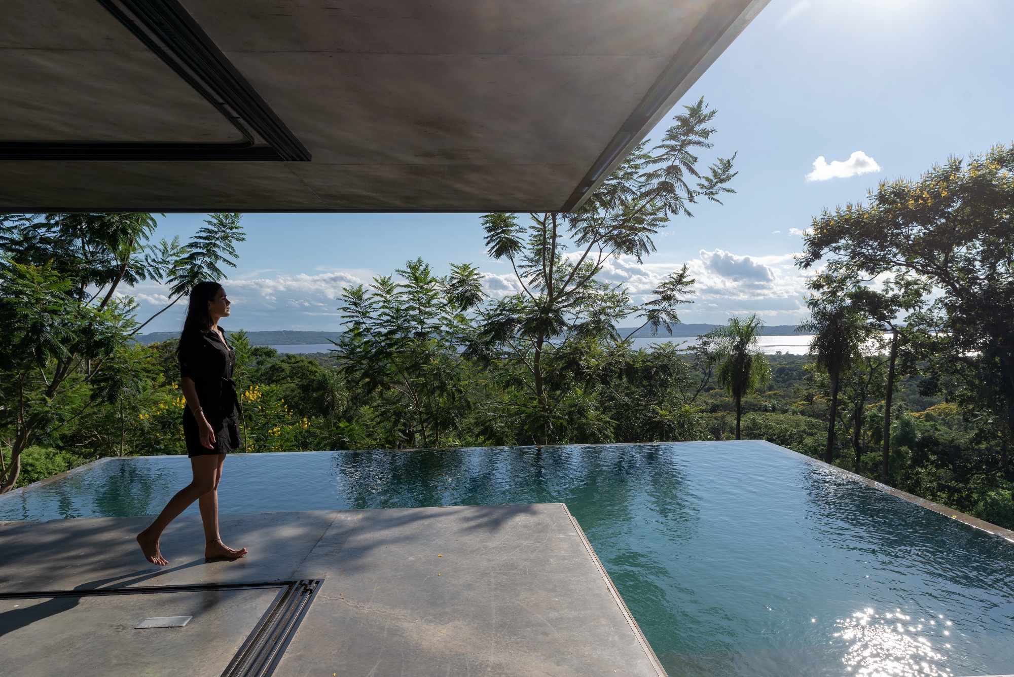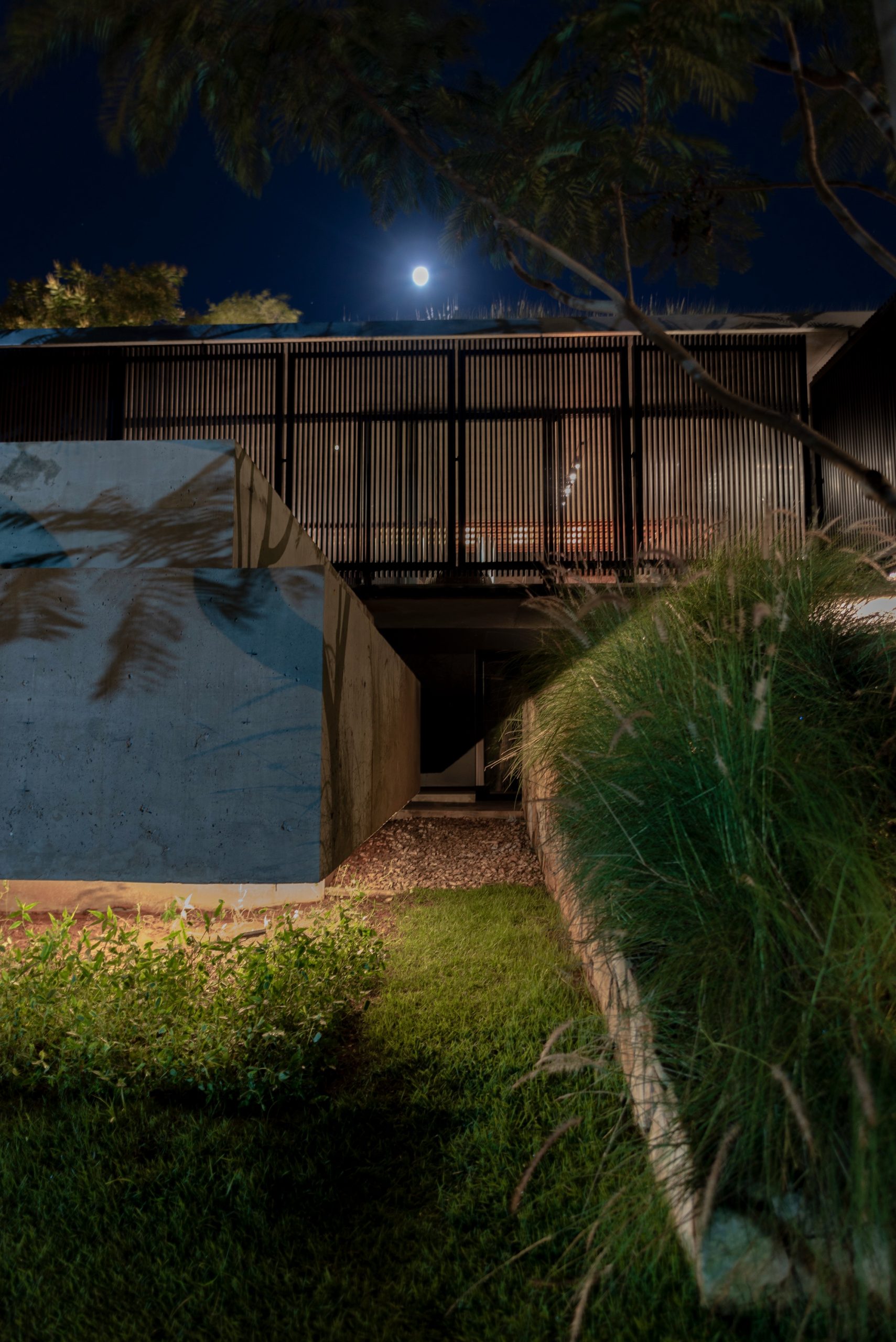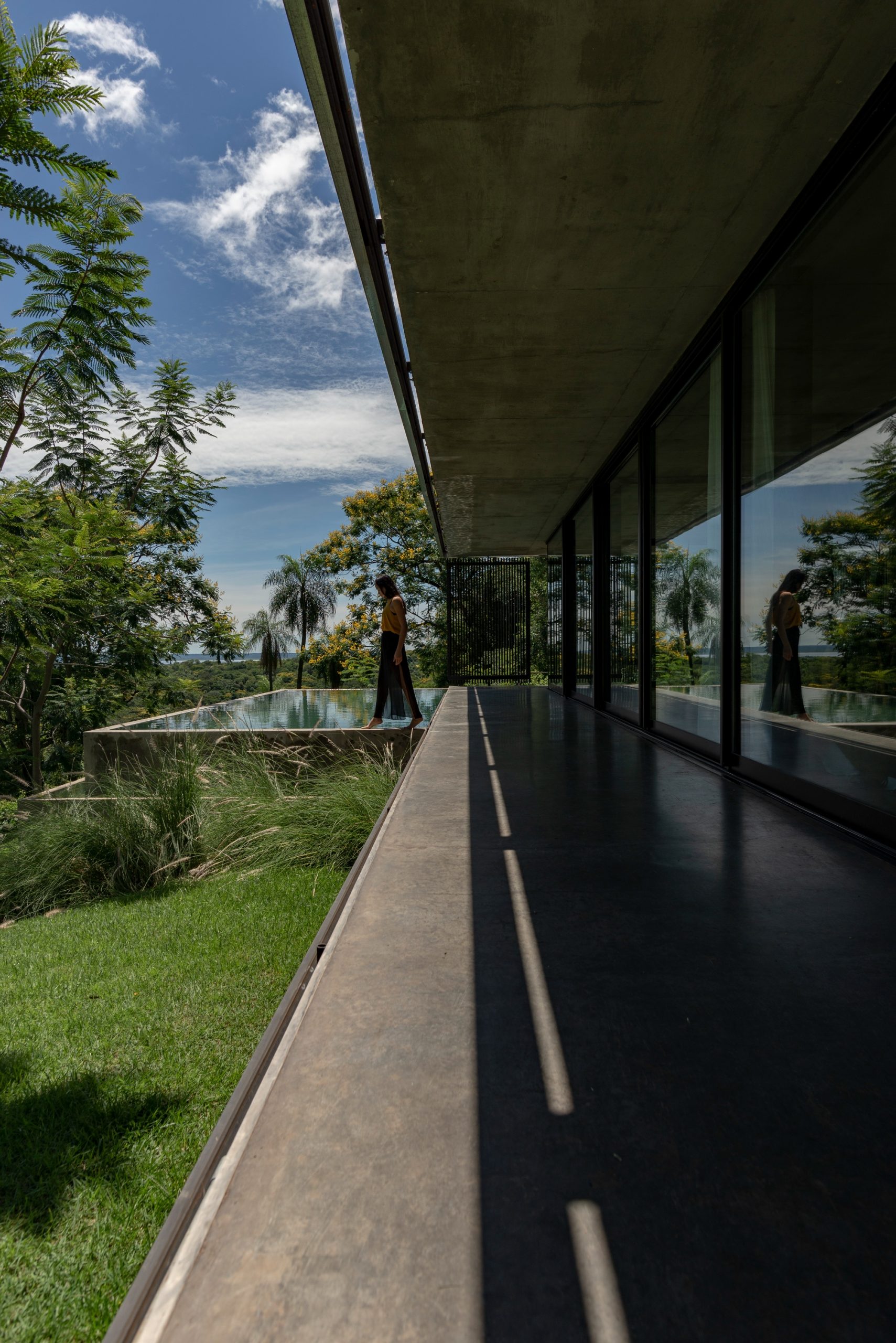 불규칙한 경사면에 자리한 정사각형 집입니다.