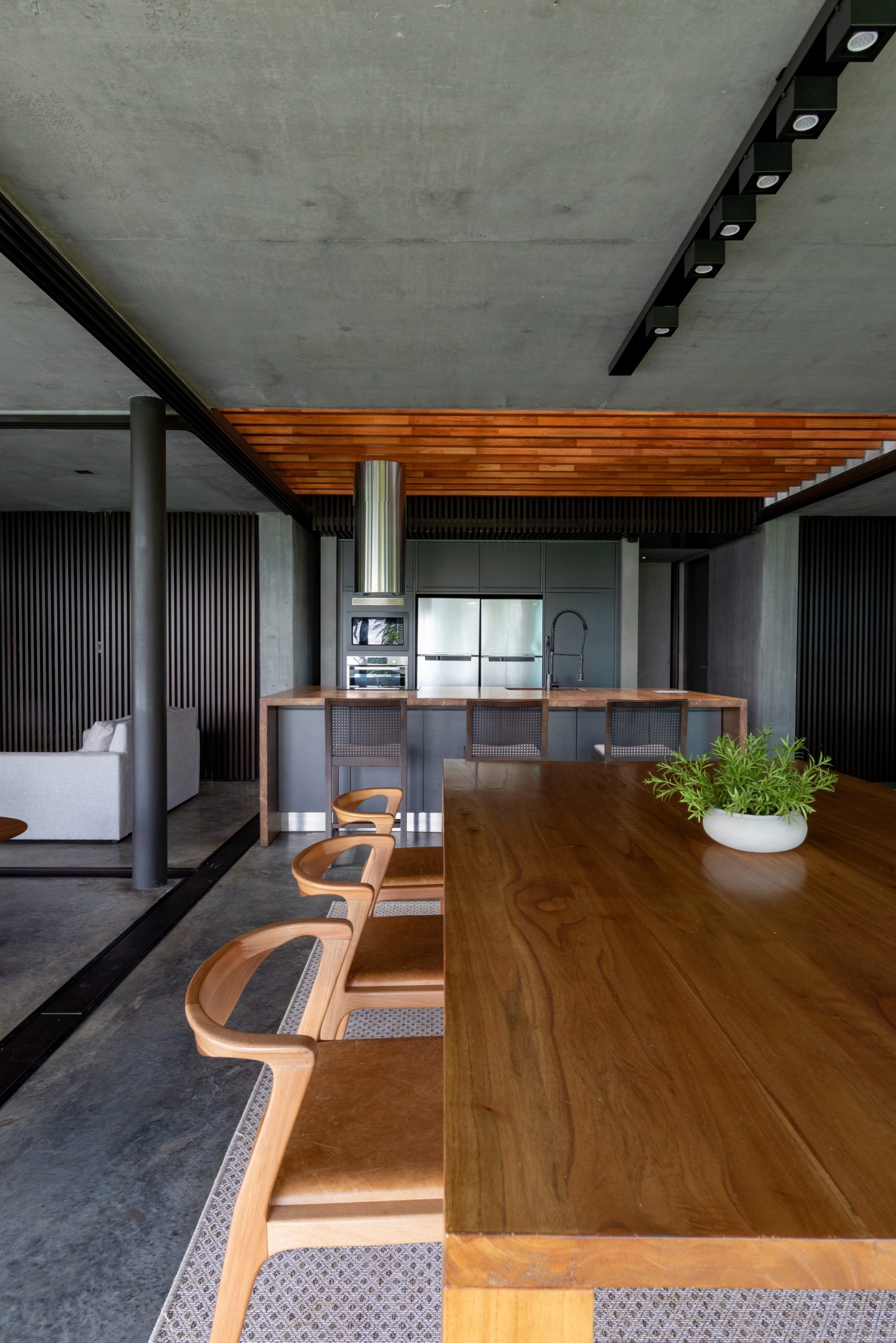 천장과 바닥의 콘크리트 슬래브가 그대로 노출되어있으며 블랙프레임들과 조화를 이룹니다.