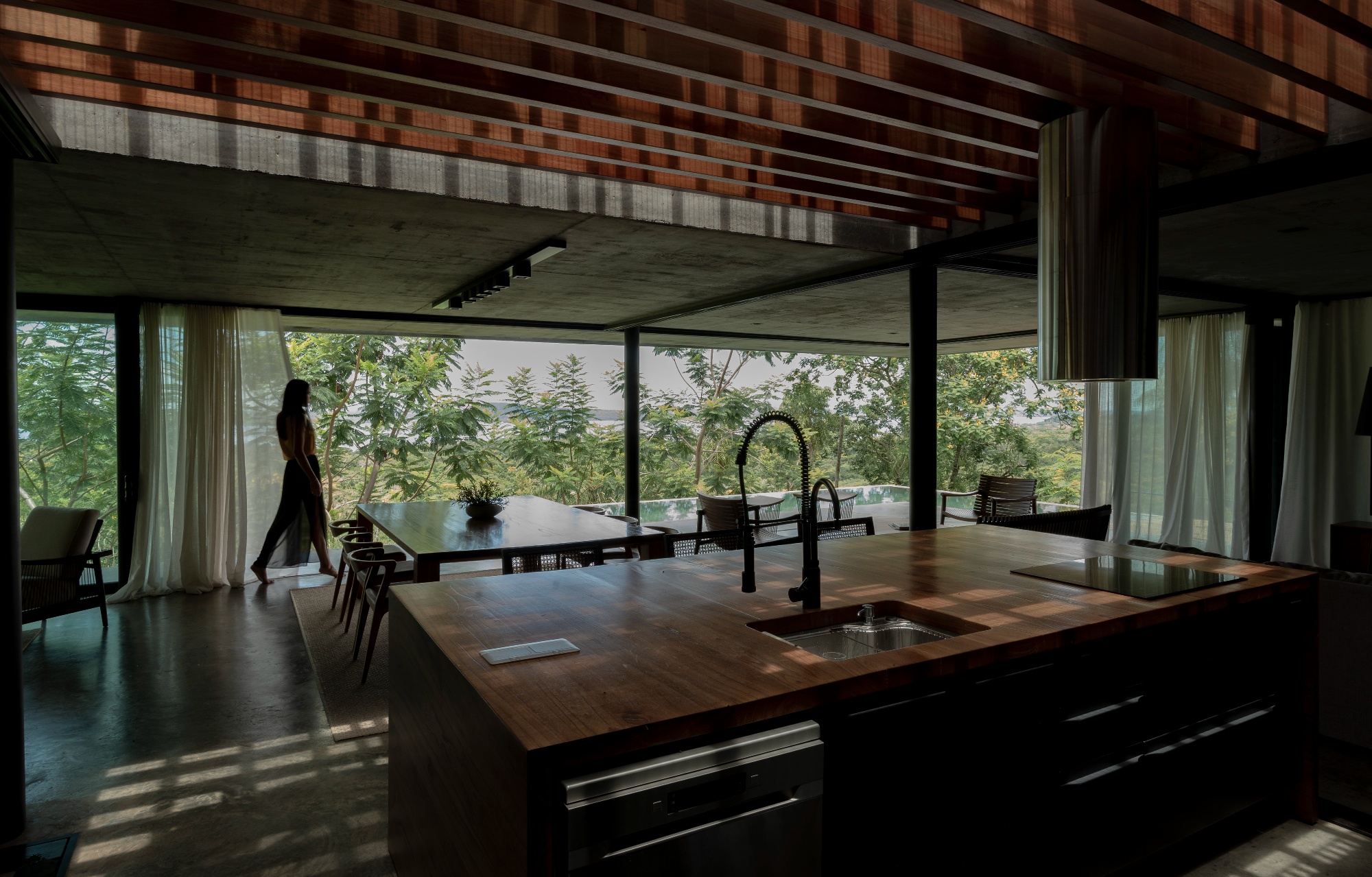 주변의 자연과 푸르름을 집안까지 받아들이고 공간을 자유롭게 구성하며