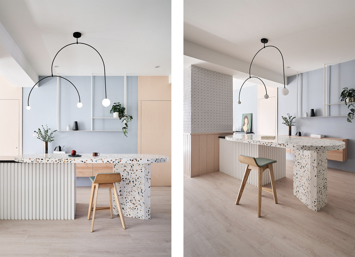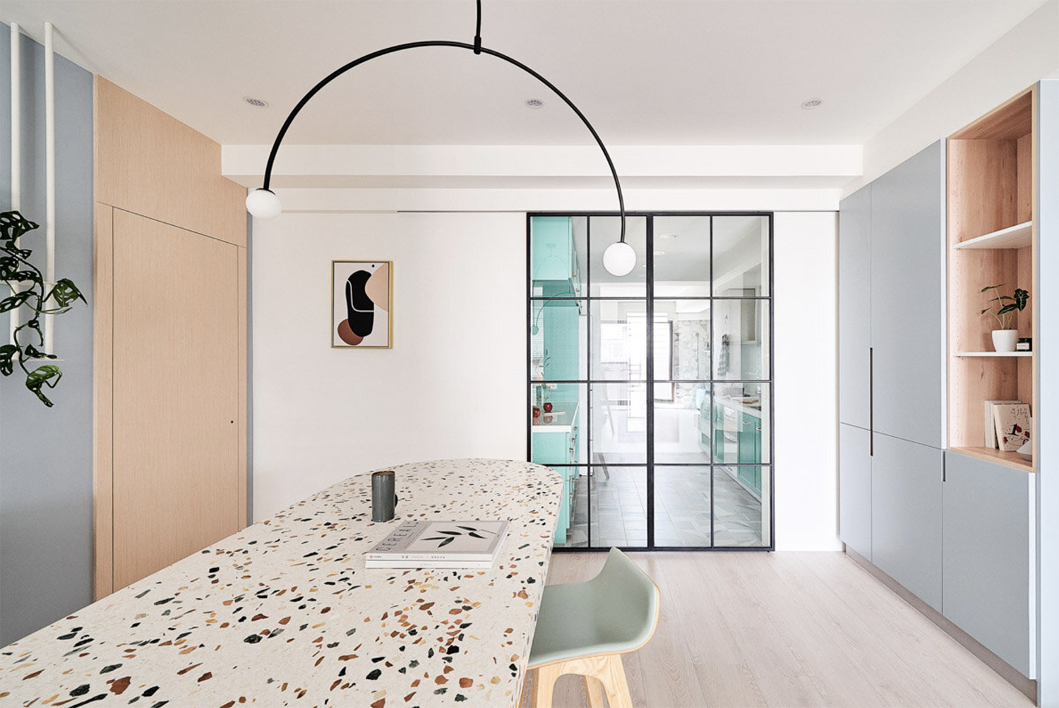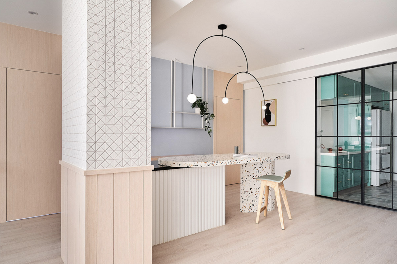 자연의 무지개에서 영감을 받은 대만의 아파트 인테리어입니다.