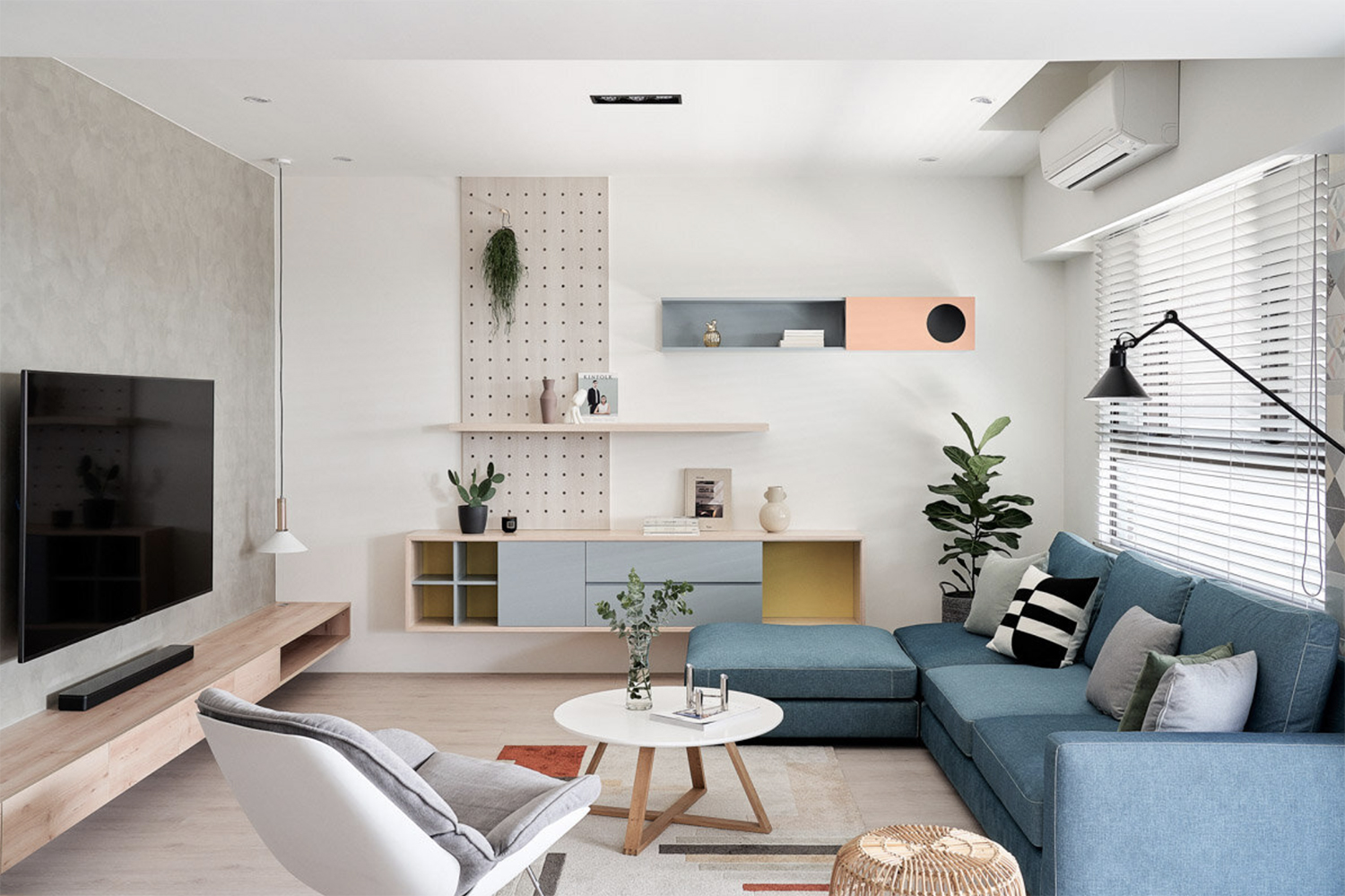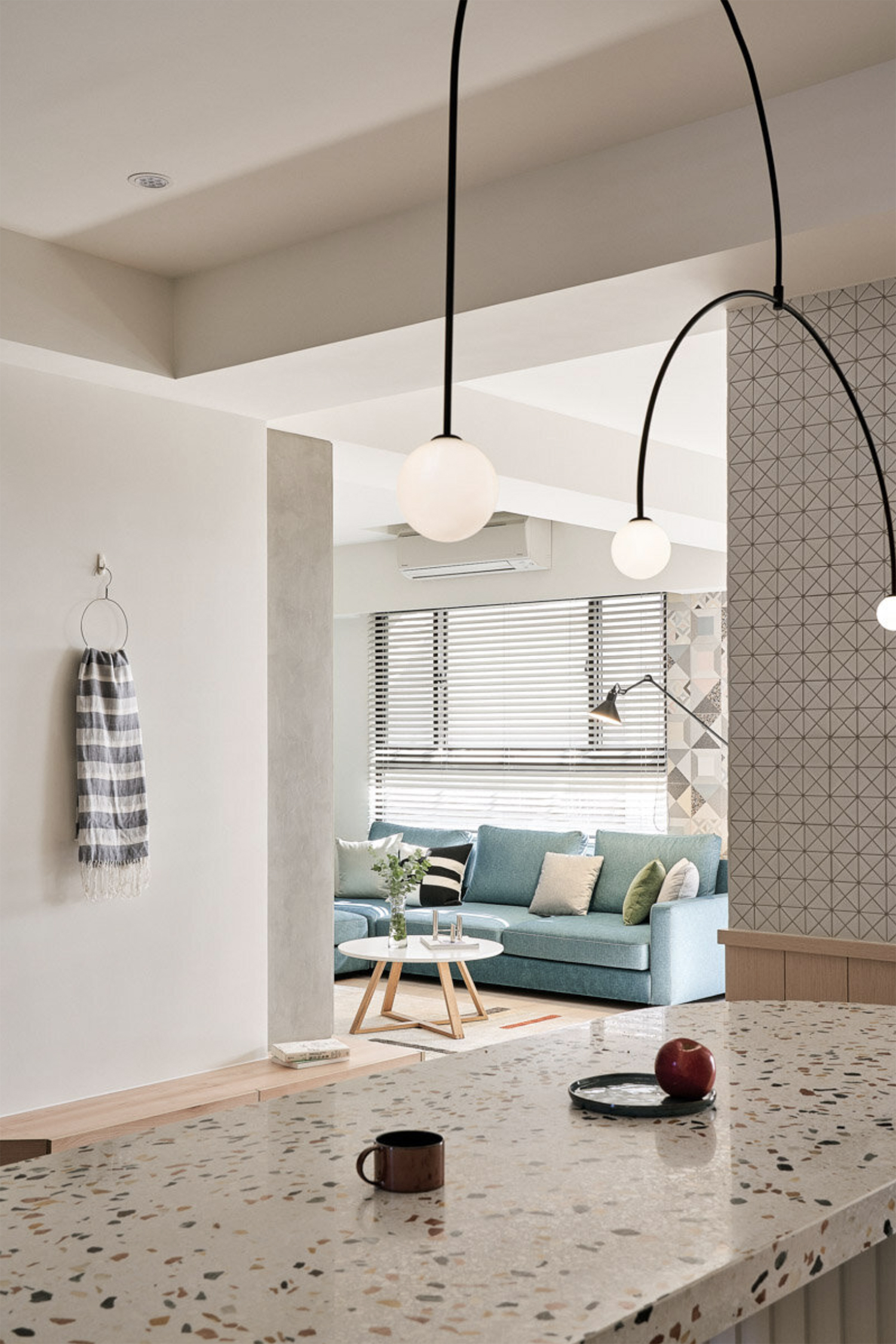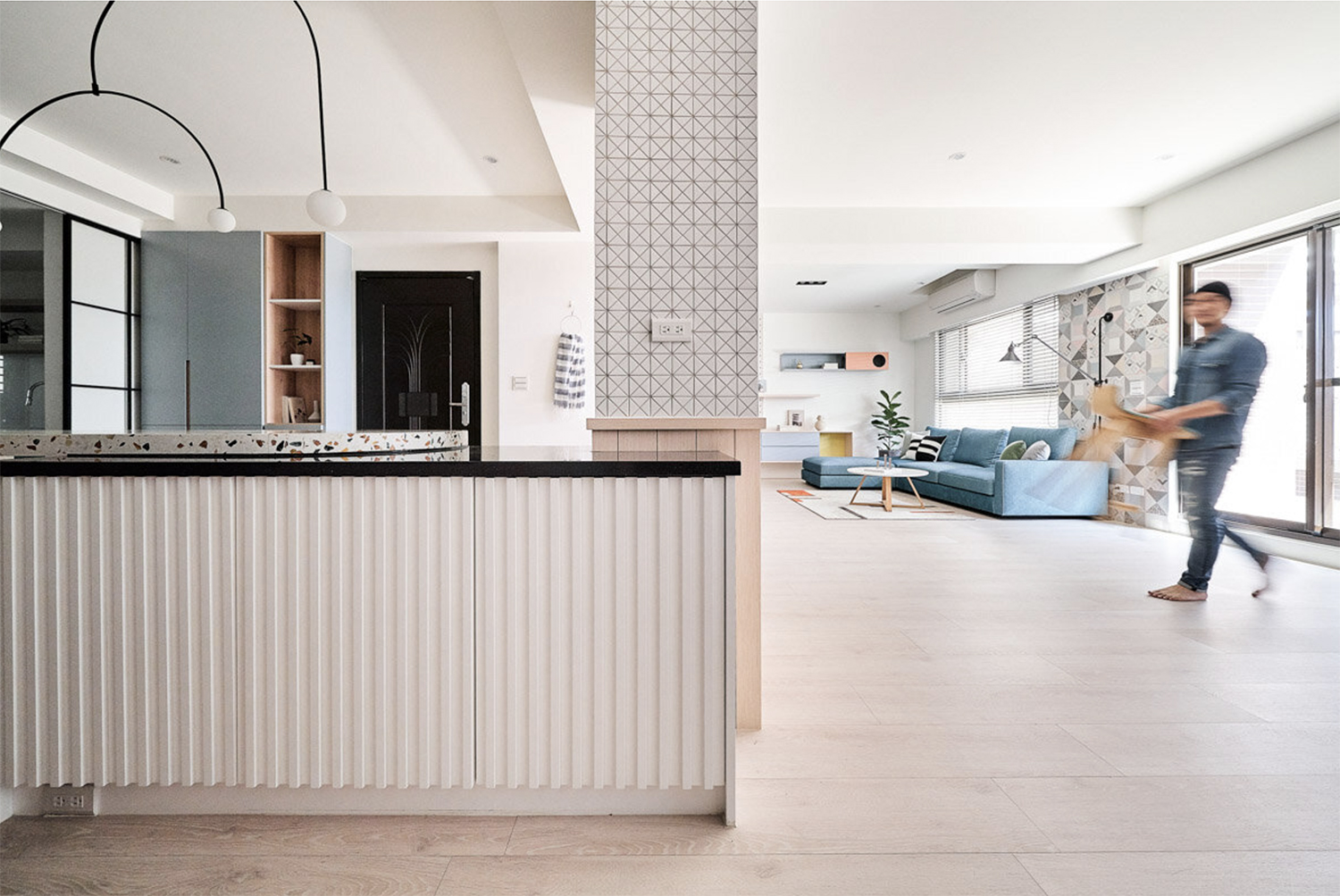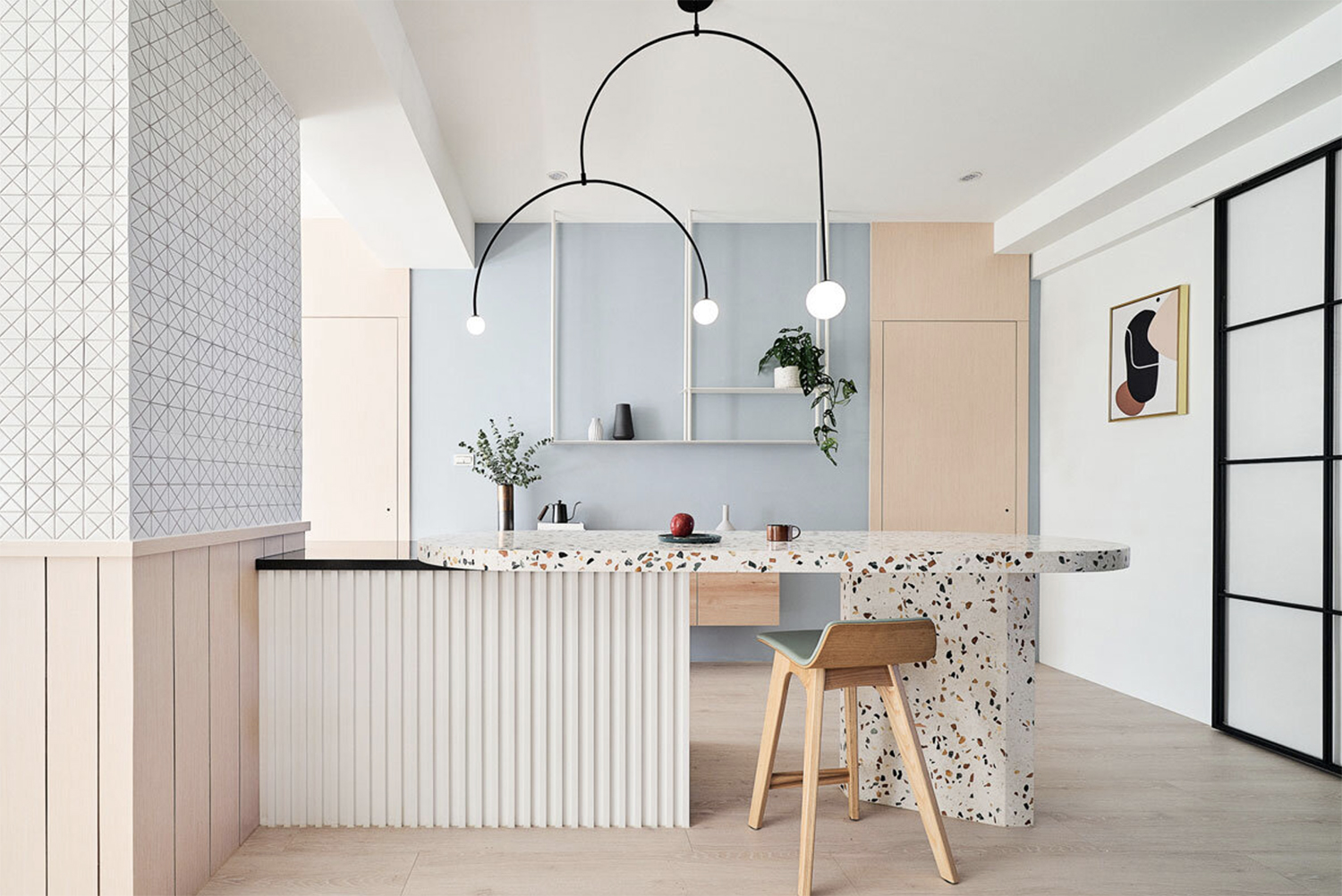 자연의 무지개에서 영감을 받은 대만의 아파트 인테리어입니다.