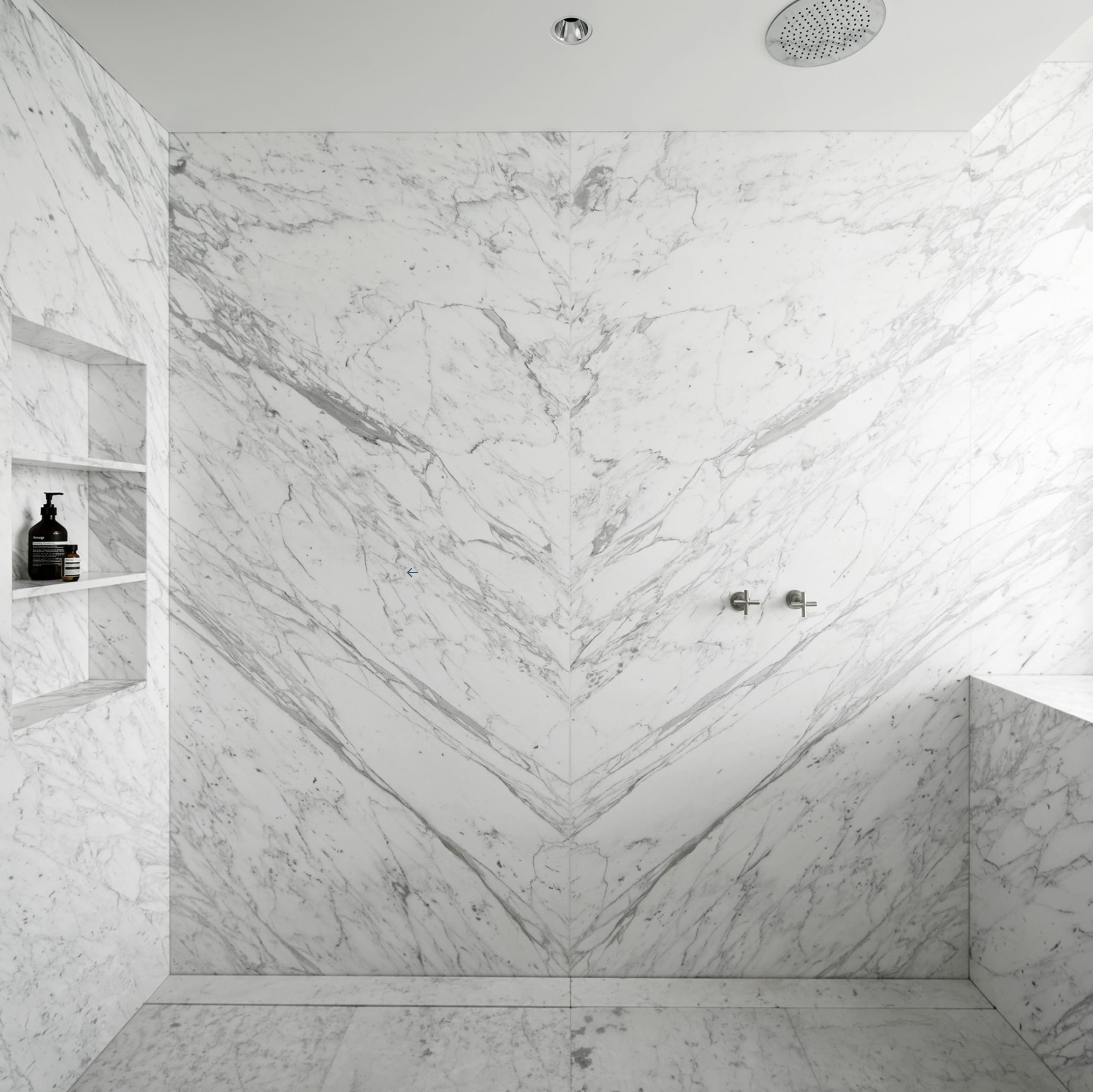 인테리어는 내외부 바닥재도 동일한 타일을 사용하고 노출콘크리트와 화이트 톤의 벽면