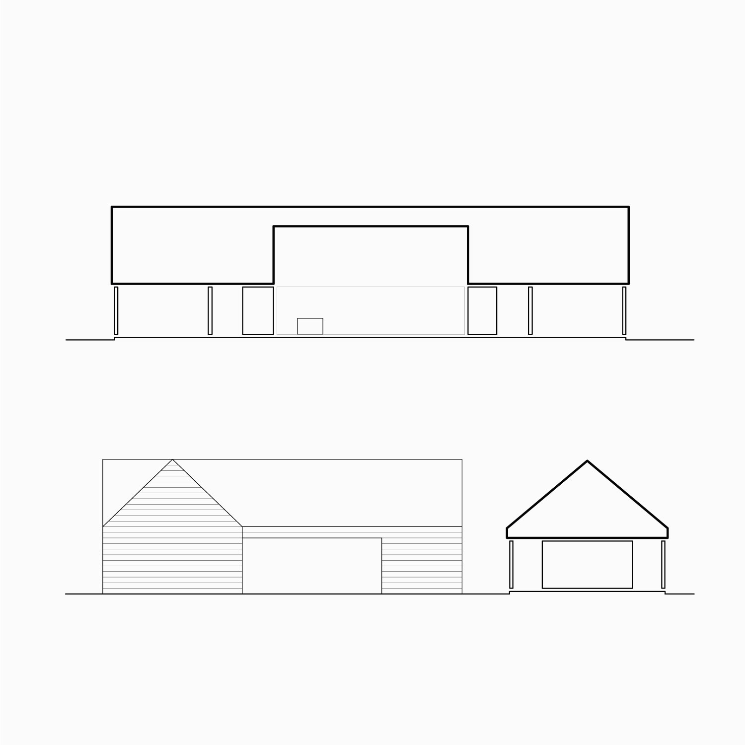본채는 앞뒤로 큰 창을 두어 개방감이 있는 형태이고 나머지 두채는 개방감 없이