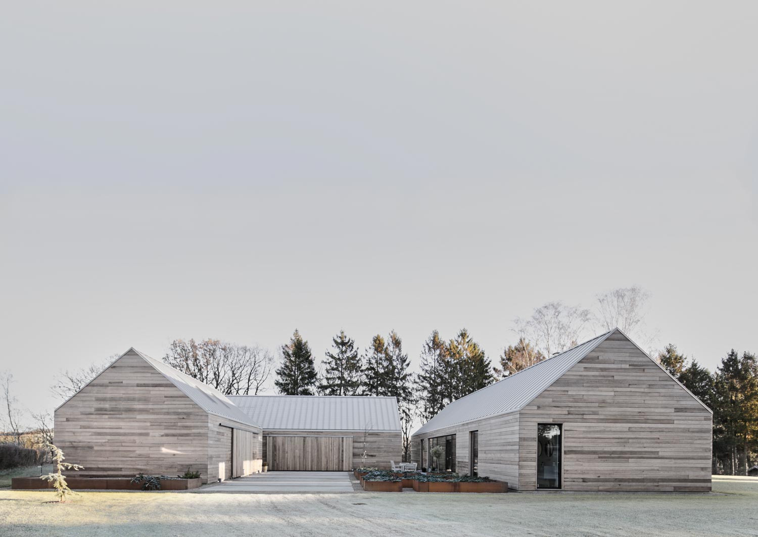 3개의 볼륨은 각각 메인 주택과 매를 위한 헛간 그리고 차고와 세미나 겸용 공간으로 나뉩니다.