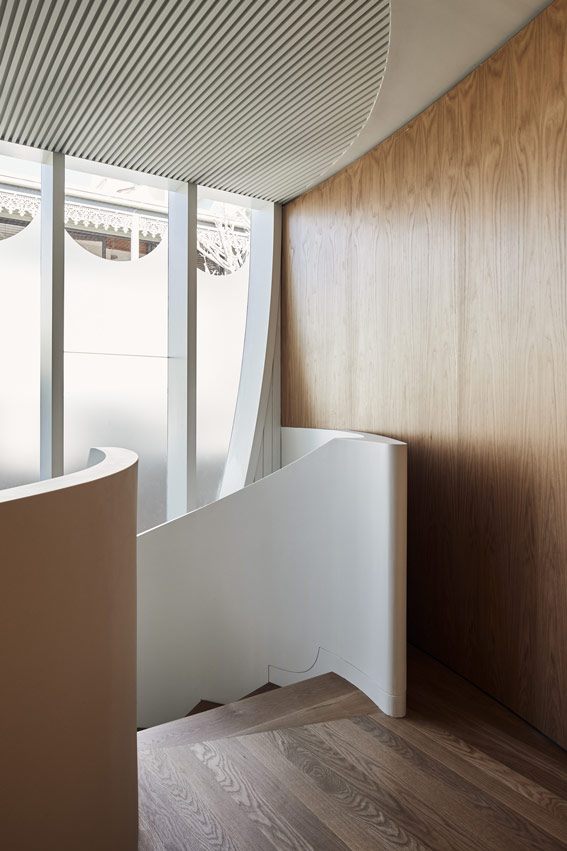아치형 문과 창문과 함께 회전형 계단은 내부에서 시선을 사로잡는