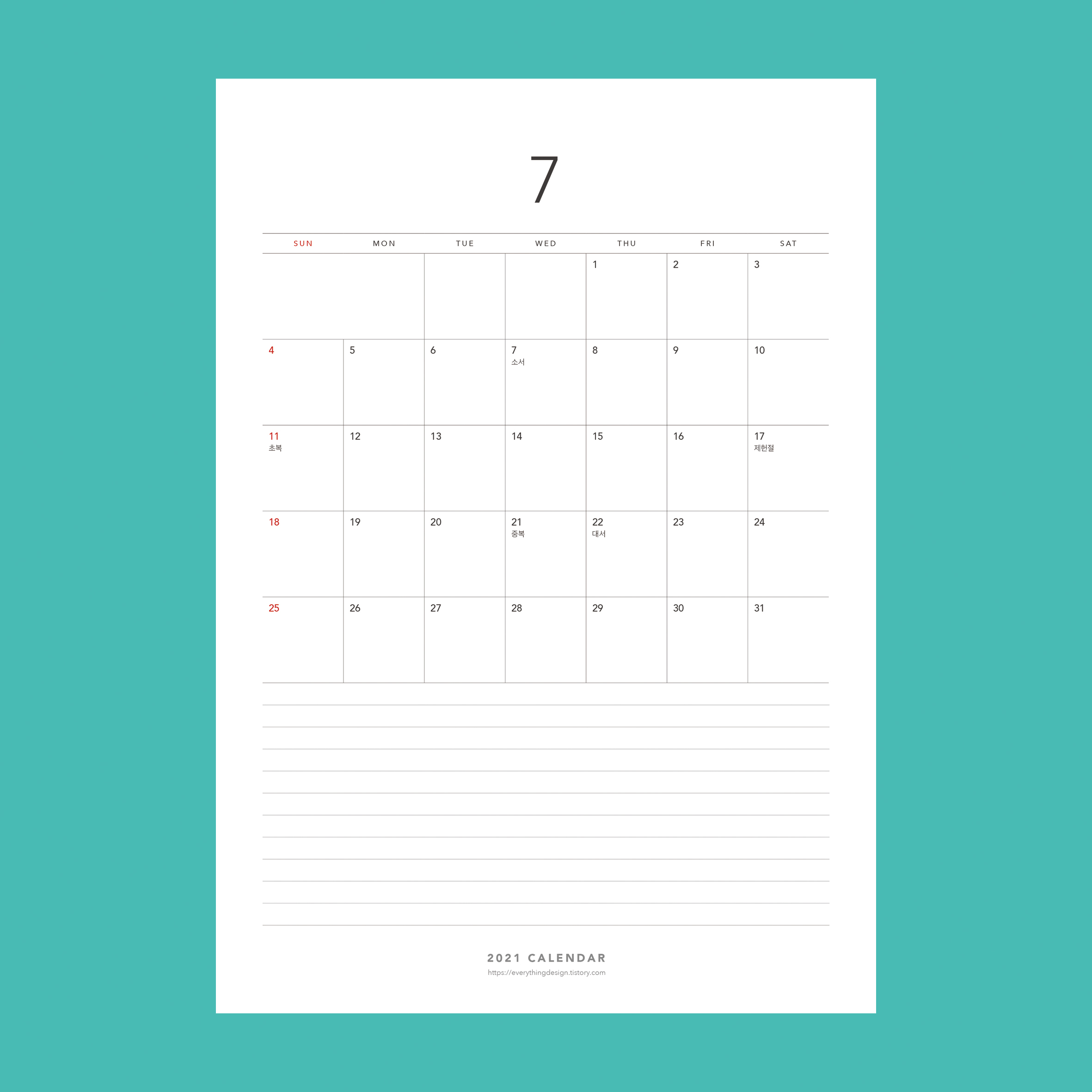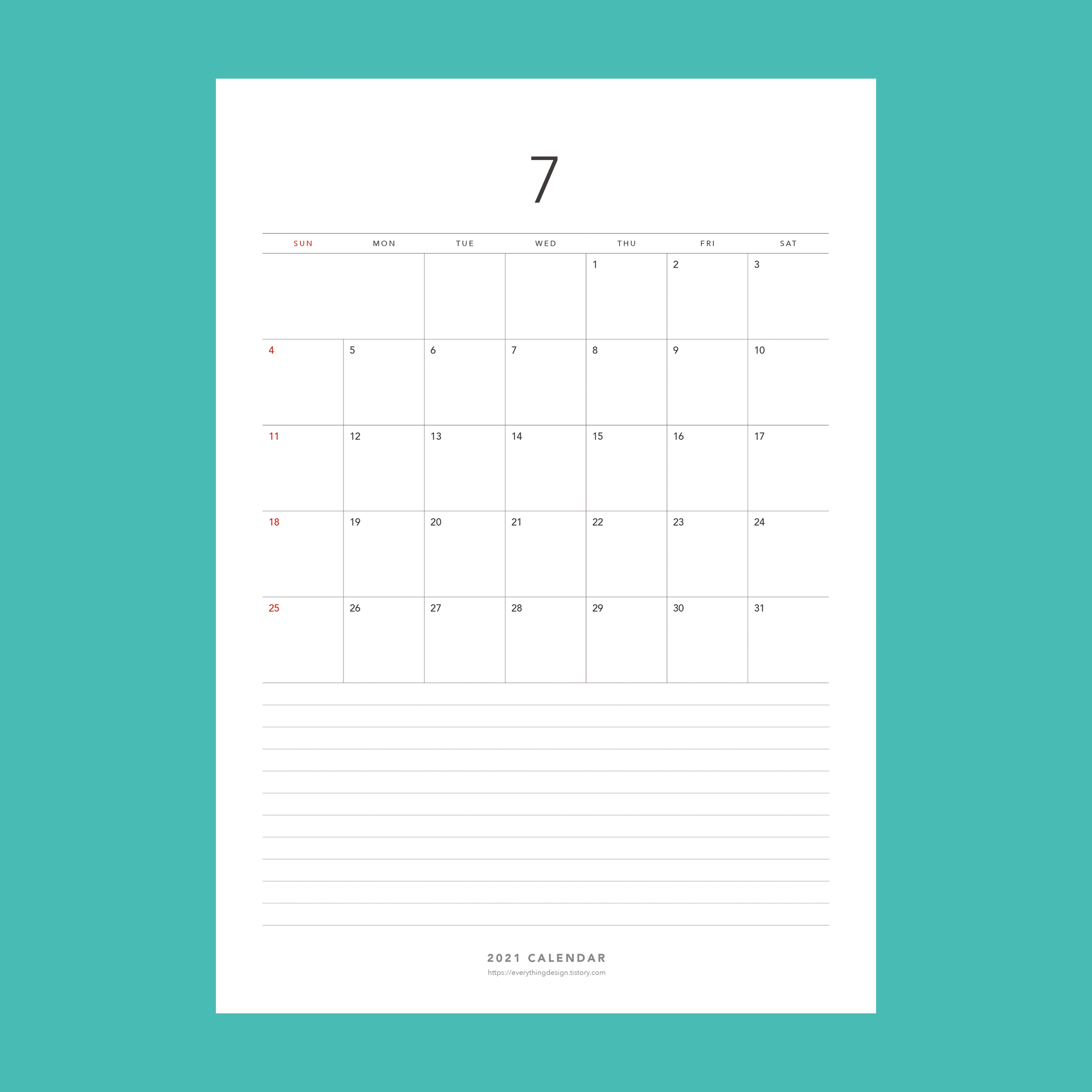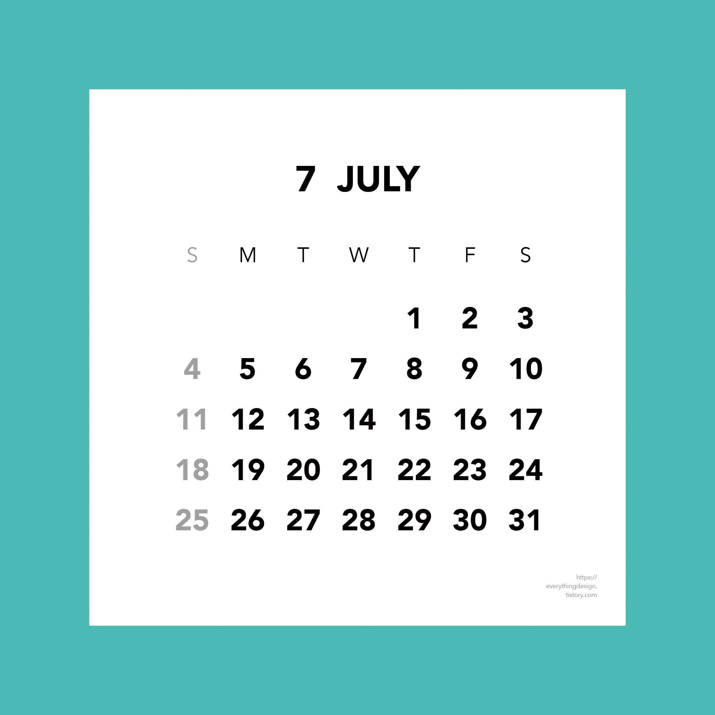 2021년 7월 달력 무료 다운로드 심플하고 깔끔한 디자인 / 무료나눔 캘린더