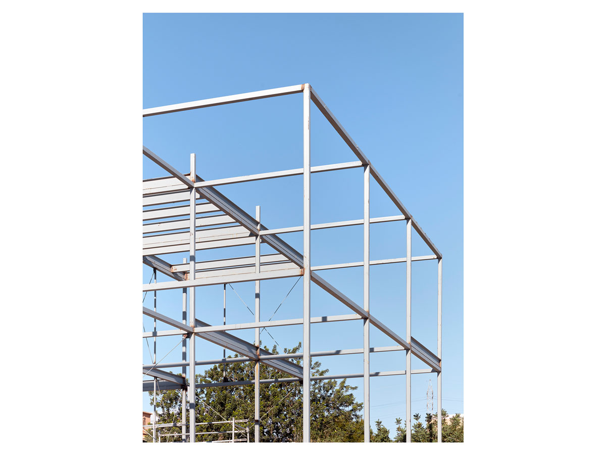 사각형의 육면체 철골 프레임을 중심으로 화이트벽과 벽돌로 지어져있습니다.