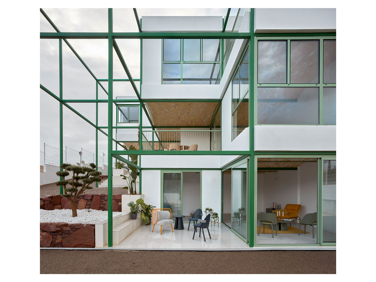 스페인 산타바바라에 위치한 하얀집은 초록색의 프레임이 눈에 띄는 집입니다.