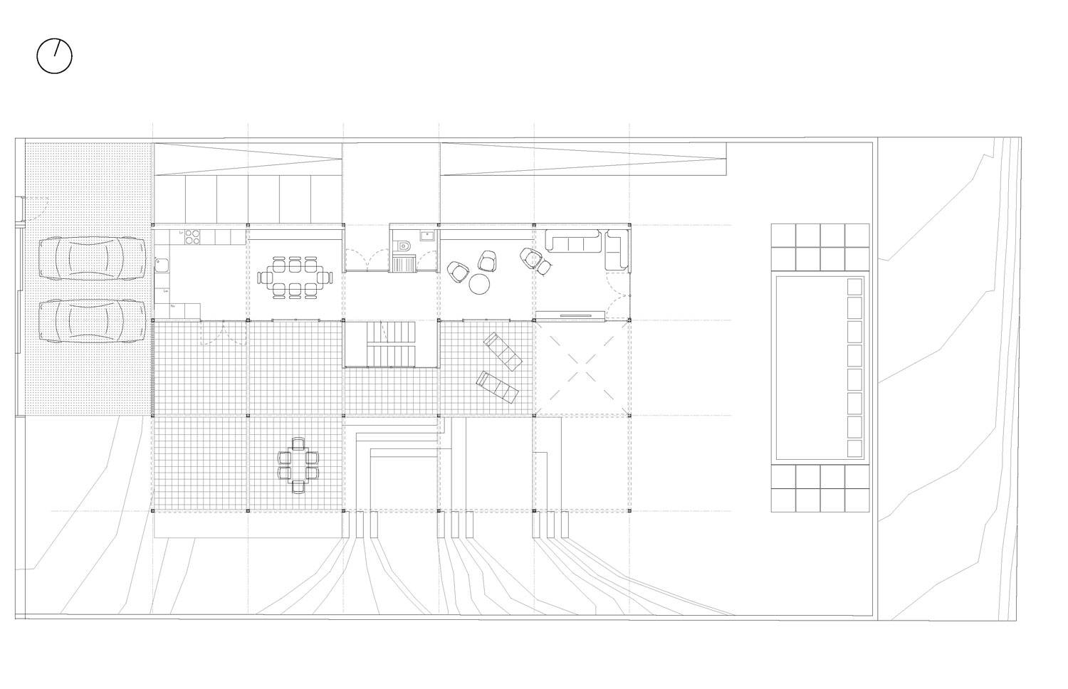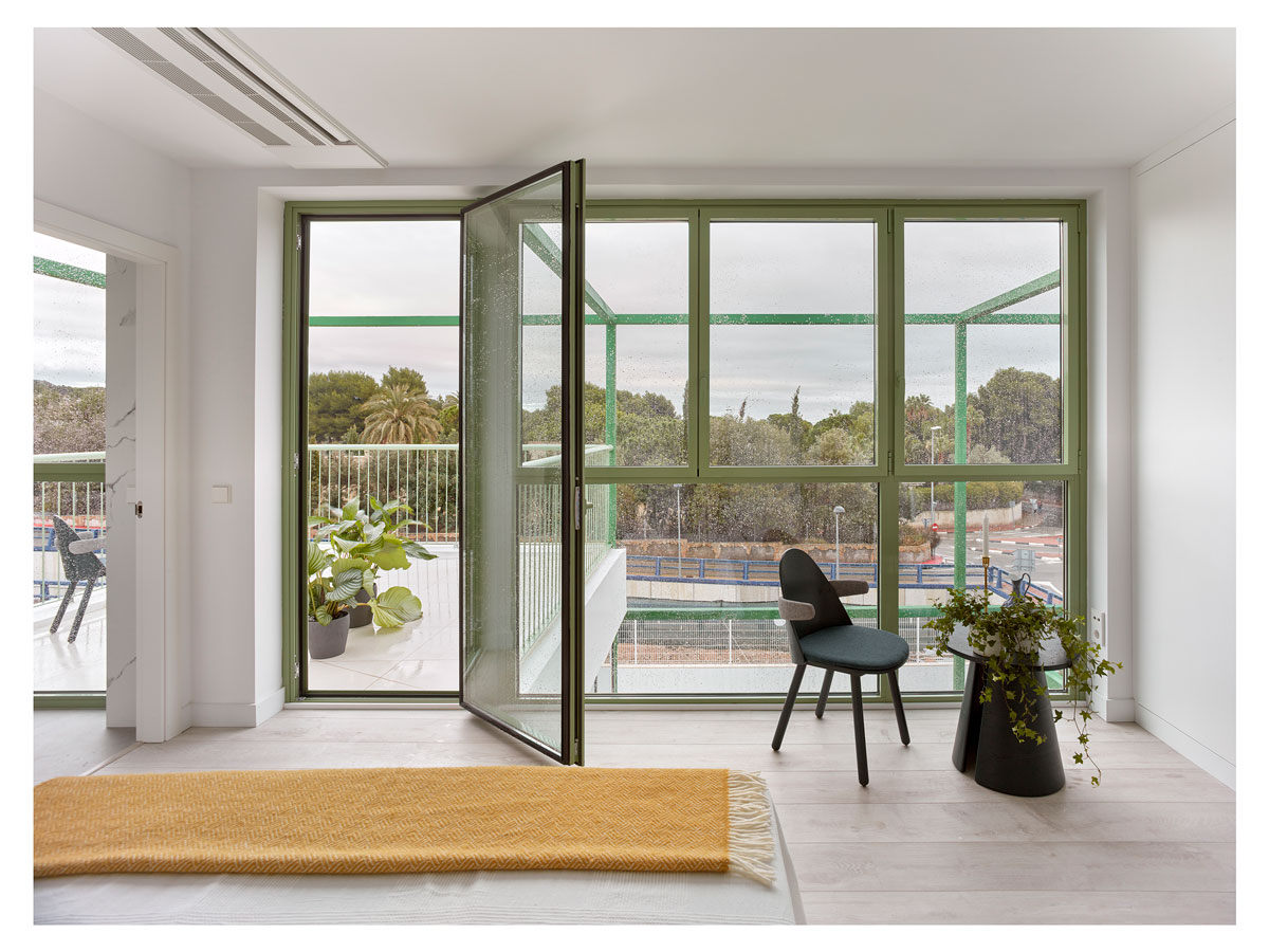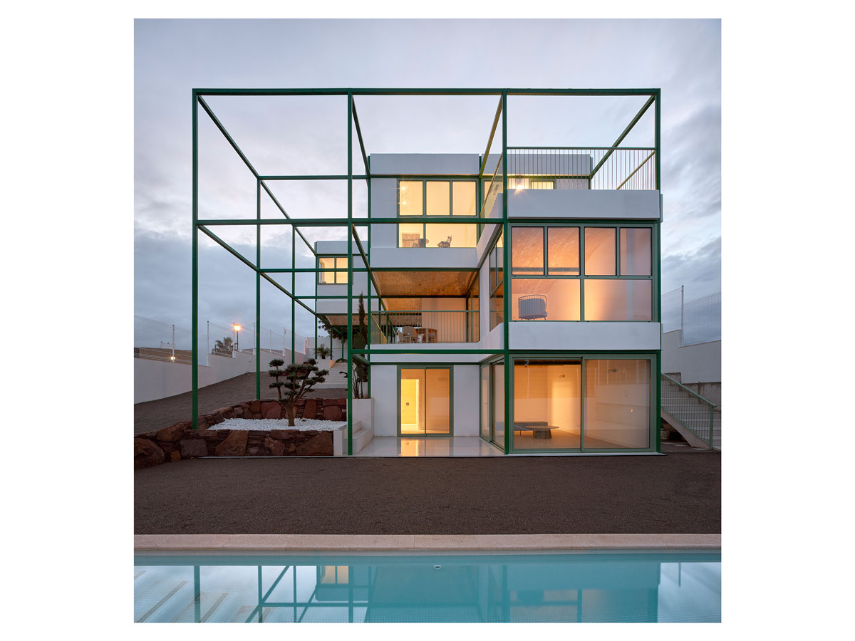 3층으로 된 집은 모듈로 인한 테라스의 연계 덕분에 안과 밖의 경계가 모호합니다.