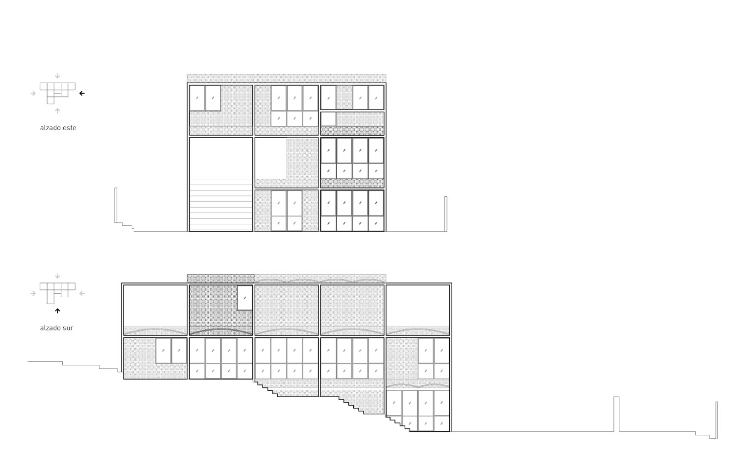 사각형의 육면체 철골 프레임을 중심으로 화이트벽과 벽돌로 지어져있습니다.