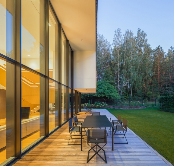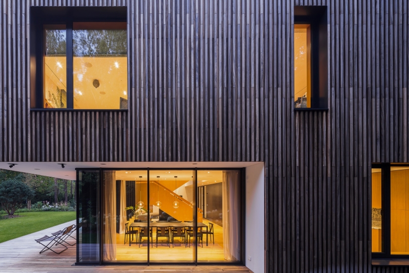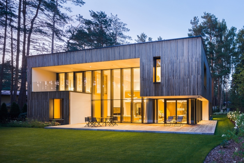 리투아니아의 외장이 나무로 마감된 현대식 주택입니다.