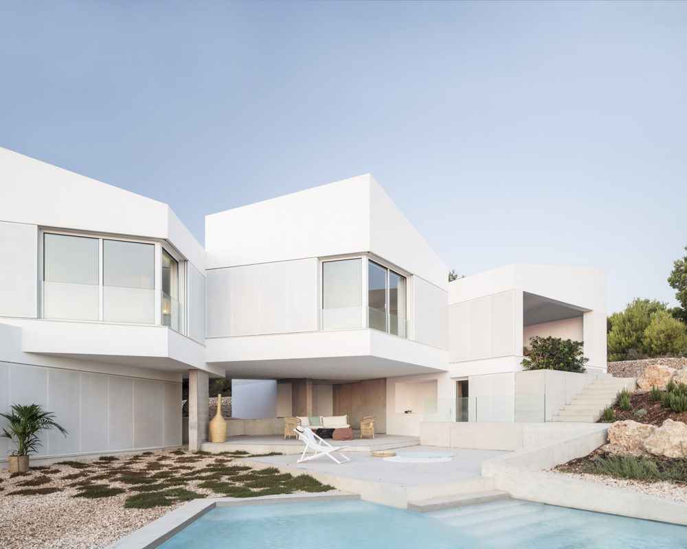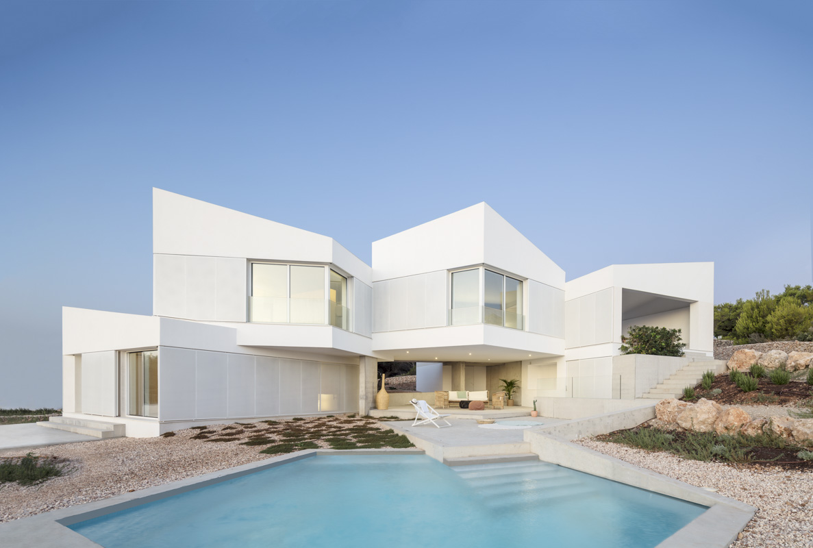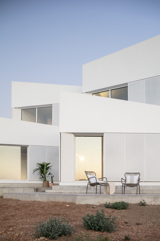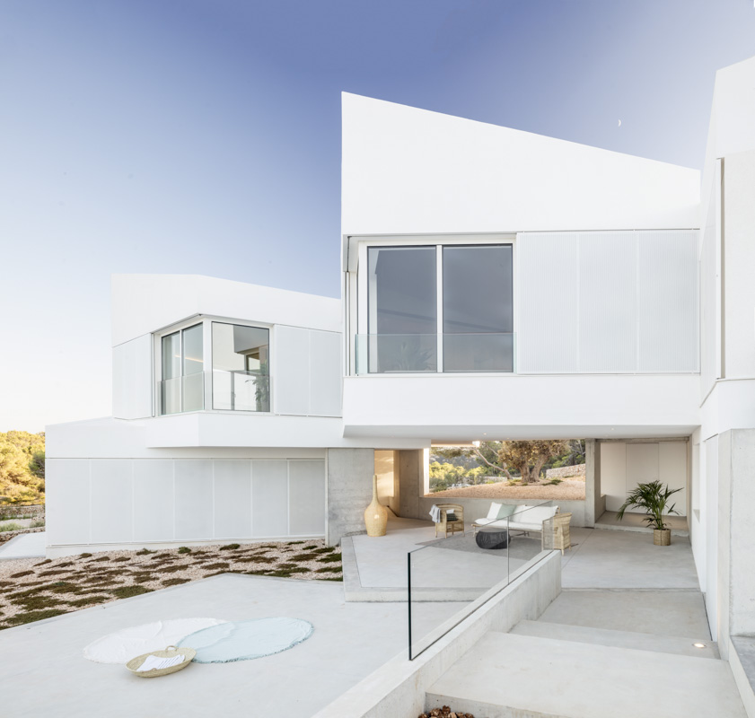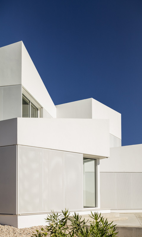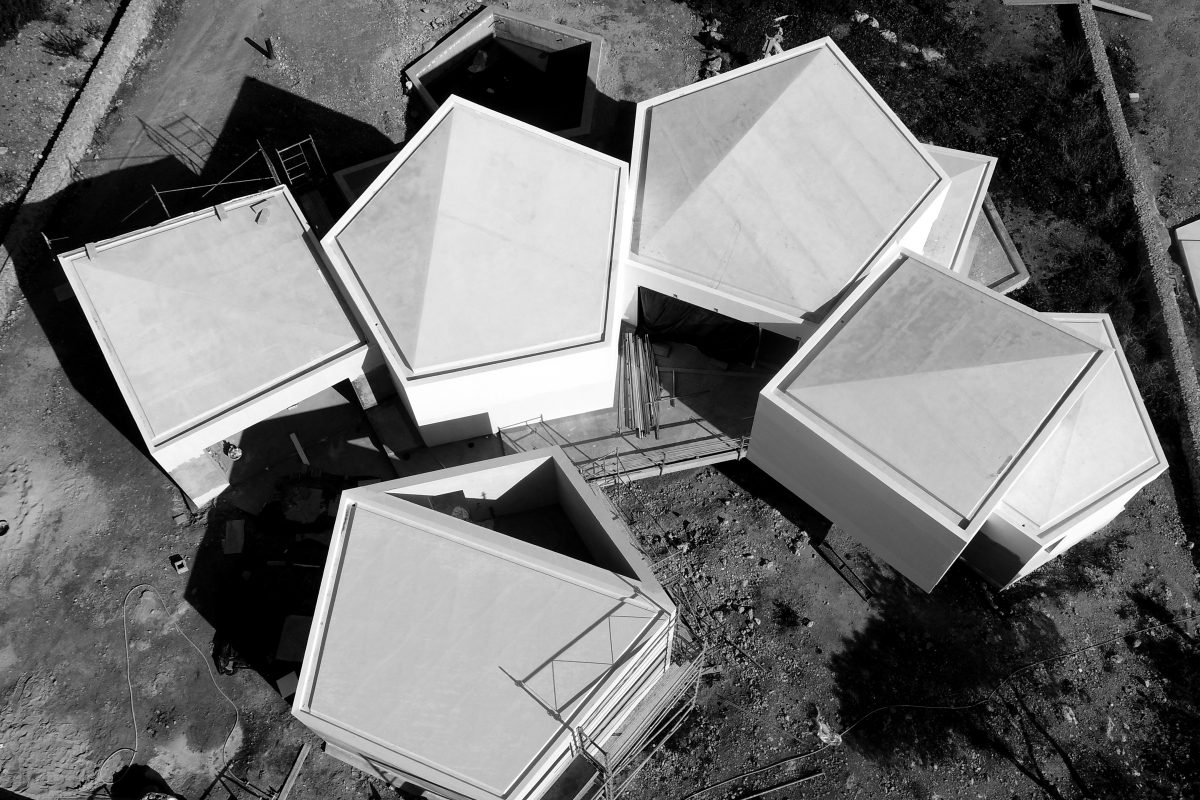 오각형과 사각형의 여러 볼륨들이 결합된 형태의 집입니다.
