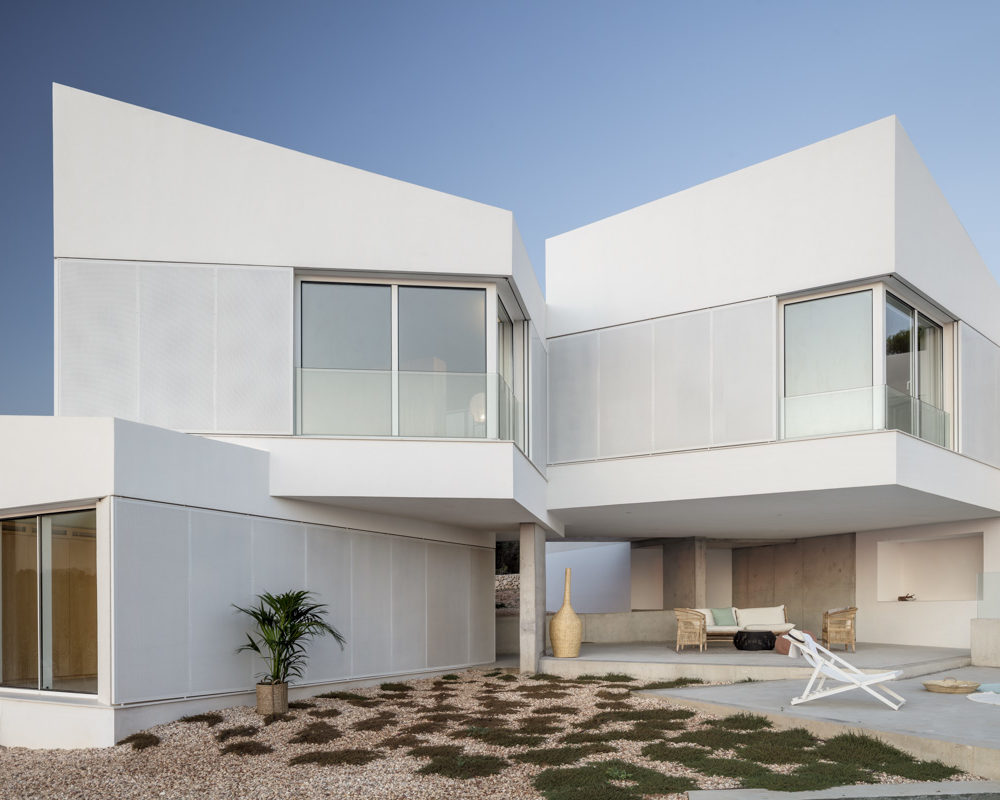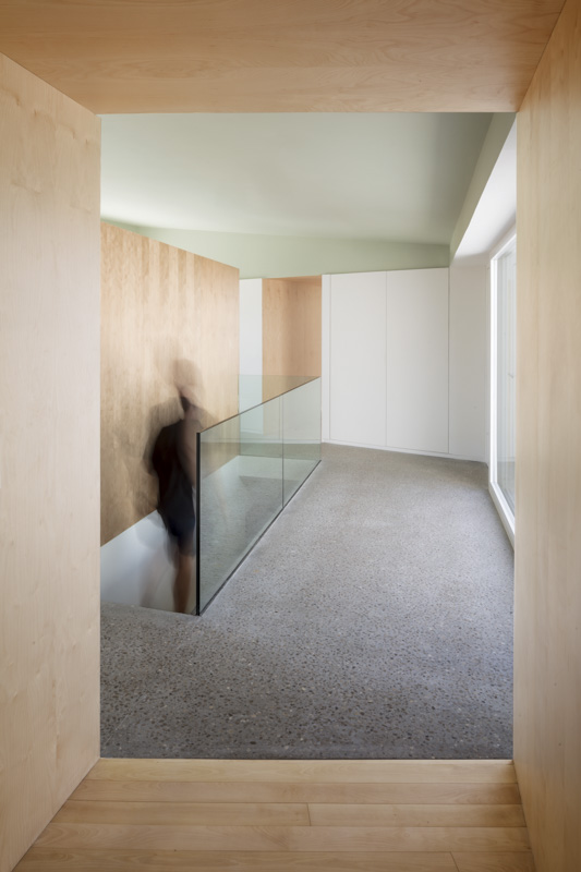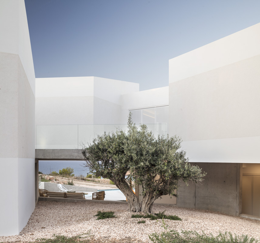 가운데 개방적인 테라스를 중심으로 2층이 공중에 떠있는 브릿지 형태의 집입니다.